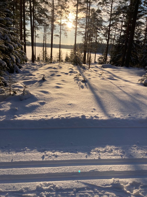 Om det finns snö så har jag skidor som man får låna.